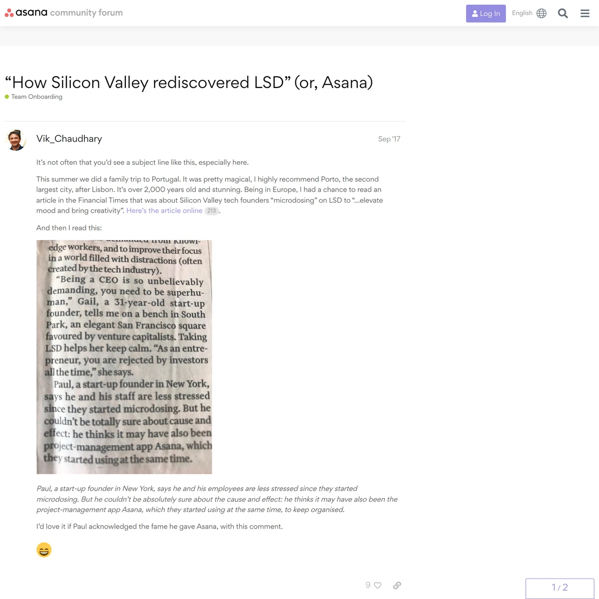 Paul, a start-up founder in New York, says he and his employees are less stressed since they started microdosing. But he couldn’t be absolutely sure about the cause and effect: he thinks it may have also been the project-management app Asana, which they started using at the same time, to keep organised.
